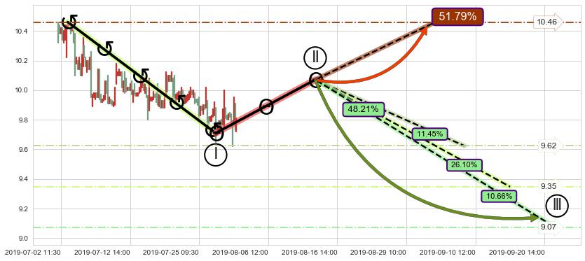 ➣ 循环浪继续向下【平均值】位置(09-16:13, 9.35),匹配聚类样本比例54.15%, 可能性概率26.10%