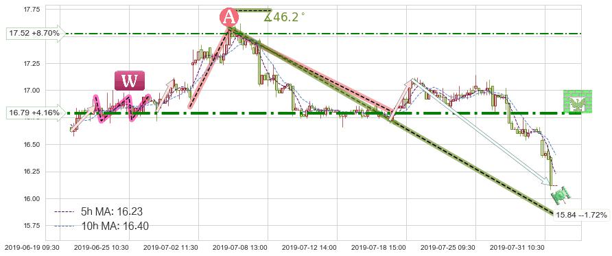 ♘ 阻力价格位16.79,可信任强度81.39%,距离最后交易2019-07-31 15:00形成的收盘价格16.12相差 +4.16%