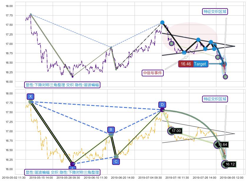➢ 下降对称三角整理属【中级别信号事件】谐波蝙蝠属【长级别信号事件】中长周期组合信号事件,中长事件长度比41.98%