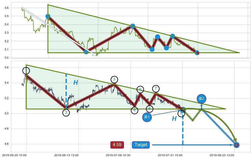 ➣ 07-08:10到达第❷价格目标位置5.14