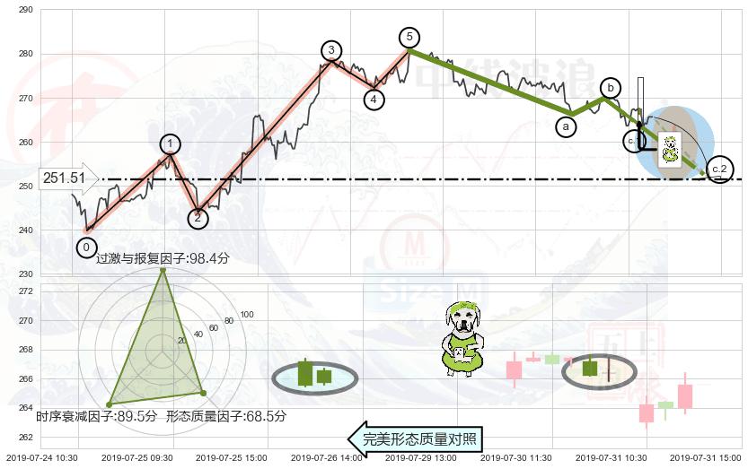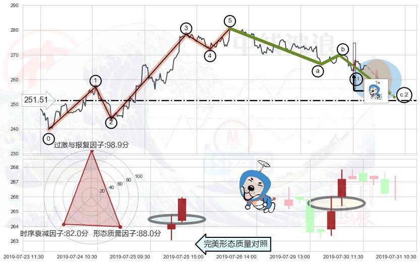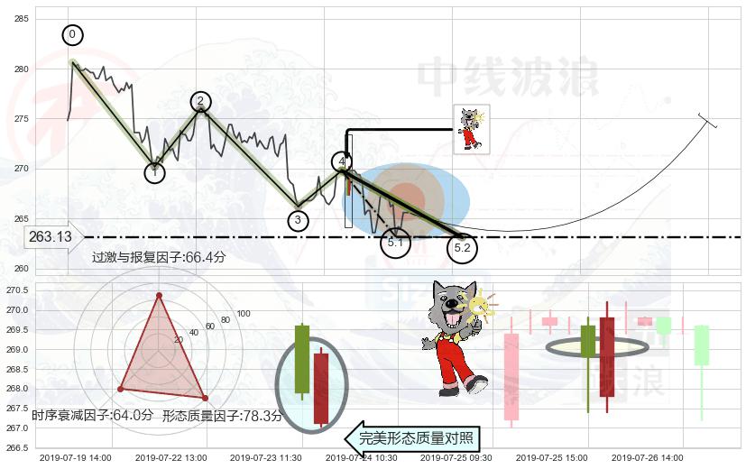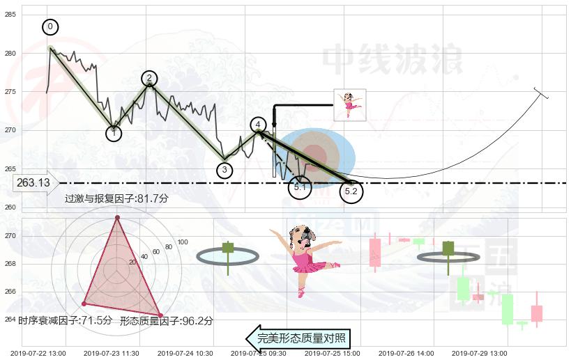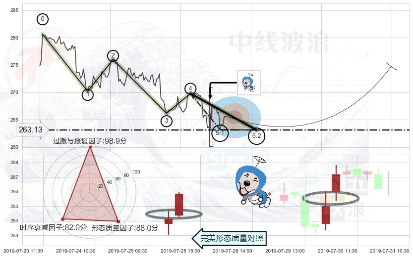 ➣ 5.1: 预测当前第5浪位置(07-31:09, 263.20),仍然有下跌空间
