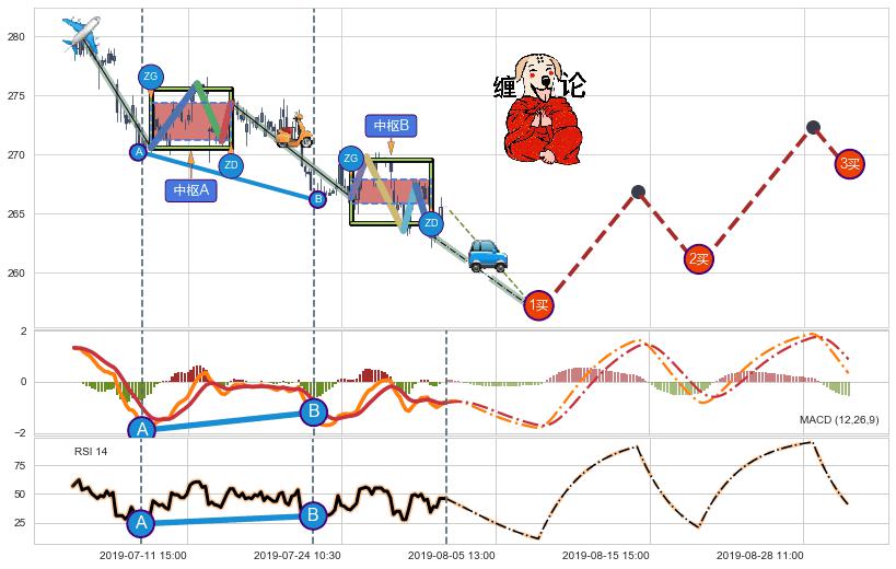 ➣ 缠论中枢点:猜想破位中枢B后持续下拉 → 下跌 → 破位中枢B支撑 → 持续趋势跟踪