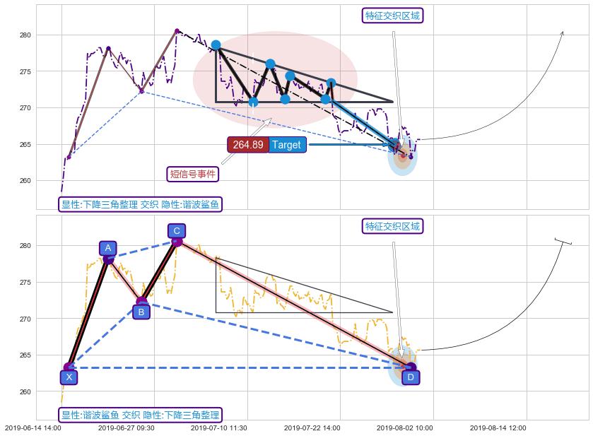 ➢ 下降三角整理属【短级别信号事件】谐波鲨鱼属【长级别信号事件】长短周期组合信号事件, 短长事件长度比34.59%
