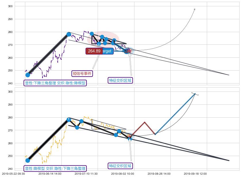 ♘ 在最后的下跌阶段2019-07-02 09:30至2019-07-31 14:00,存在 持续未破位的阻力位 ,阻力价格266.78,可信任强度81.82%,其距离最后价格265.60相差 +0.44%