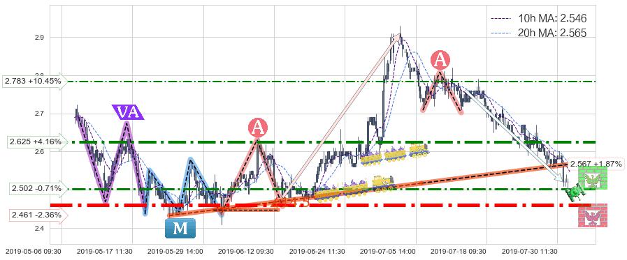 ♘ 支撑价格位2.461,可信任强度96.64%,距离最后交易2019-07-31 15:00形成的收盘价格2.520相差 -2.36%