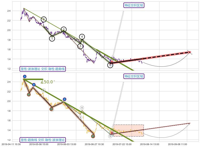 ➢ 2019-04-15 09:30-2019-06-20 15:00下跌趋势存在反转上涨[机会],其原下跌趋势的阻力位(1.0433)已被突破[强支撑信号],原下跌趋势角度: 50.0˚