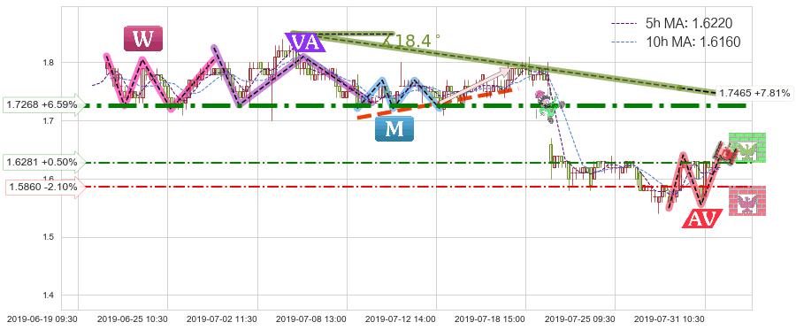 ♘ 阻力价格位1.7268,可信任强度95.65%,距离最后交易2019-07-31 15:00形成的收盘价格1.6200相差 +6.59%
