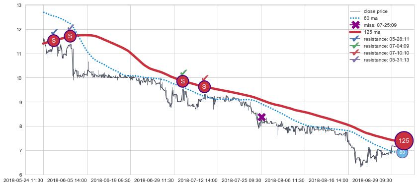 ➢ 最优均线组合共正确确认支撑阻力信号10处,正确确认率 62.50%
