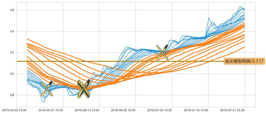 ➢ 35小时均线于(05-27 11:30: 2.856)形成【金叉】基于【金叉历史模型】预测金叉后最高波峰价格: 3.013, 金叉后最高价格3.660,已经上涨超出预测最高波峰价格, 预期回调