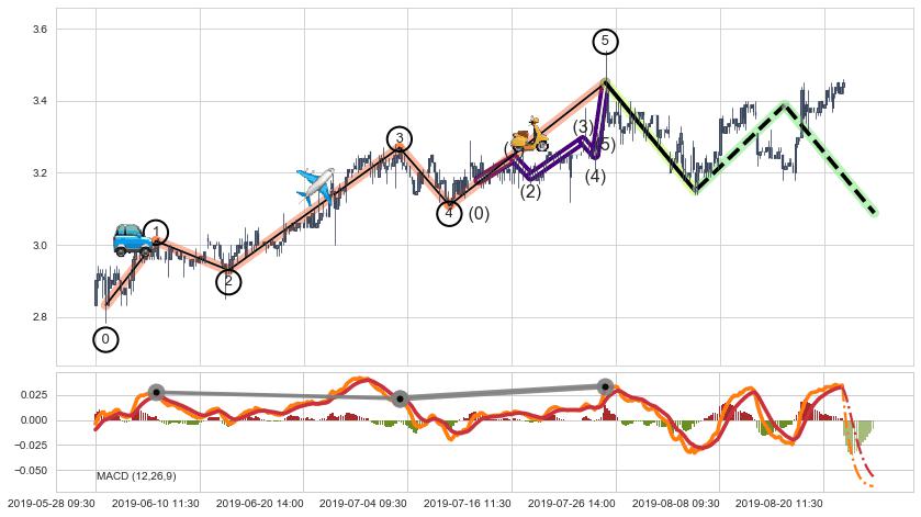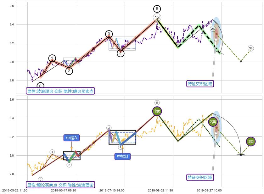 ➣ 缠论买卖点:猜想2卖持续蓄力下跌至3卖 → 下跌 → 风险信号 → 小趋势跟踪