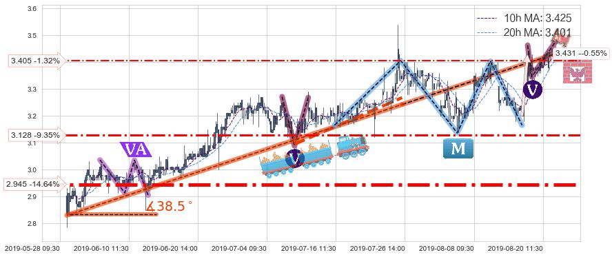 ♘ 支撑价格位2.945,可信任强度85.19%,距离最后交易2019-08-21 15:00形成的收盘价格3.450相差 -14.64%