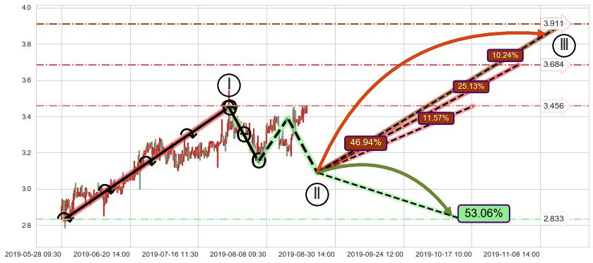 ♘ 支撑价格位3.128,可信任强度69.98%,距离最后交易2019-08-21 15:00形成的收盘价格3.450相差 -9.35%