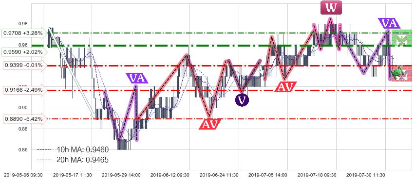 ♘ 阻力价格位0.9708,可信任强度53.76%,距离最后交易2019-07-31 15:00形成的收盘价格0.9400相差 +3.28%