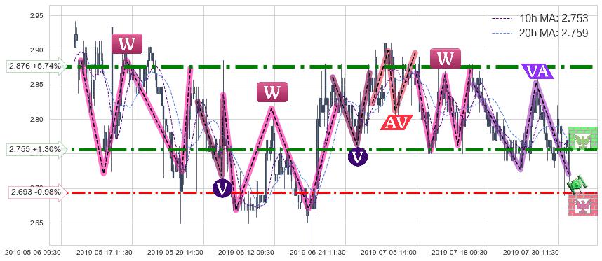 ♘ 阻力价格位2.876,可信任强度99.00%,距离最后交易2019-07-31 15:00形成的收盘价格2.720相差 +5.74%