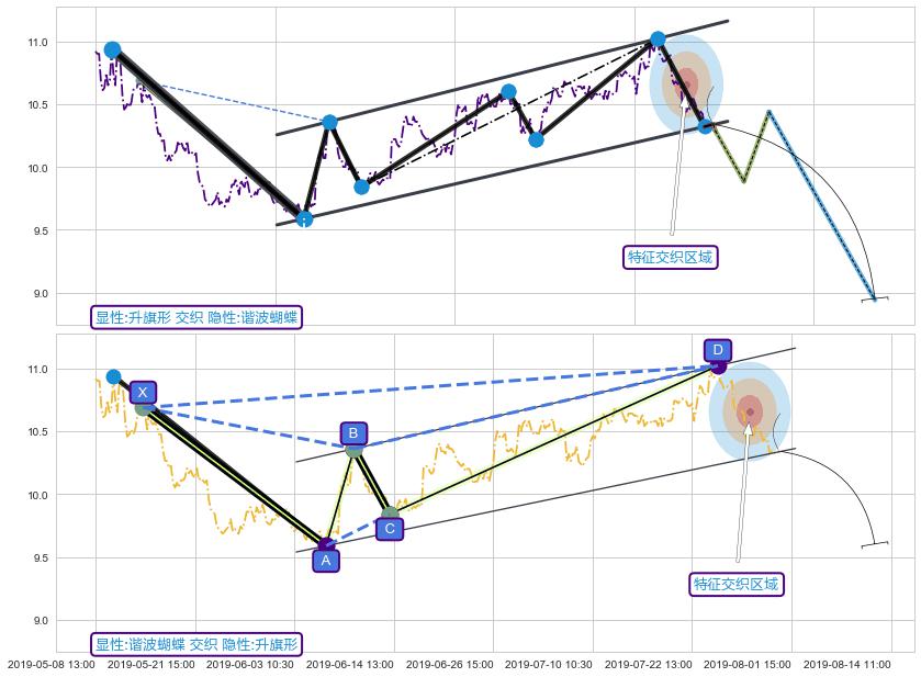 ➢ 升旗形与谐波蝴蝶信号事件周期长度级别相同,同周期信号事件