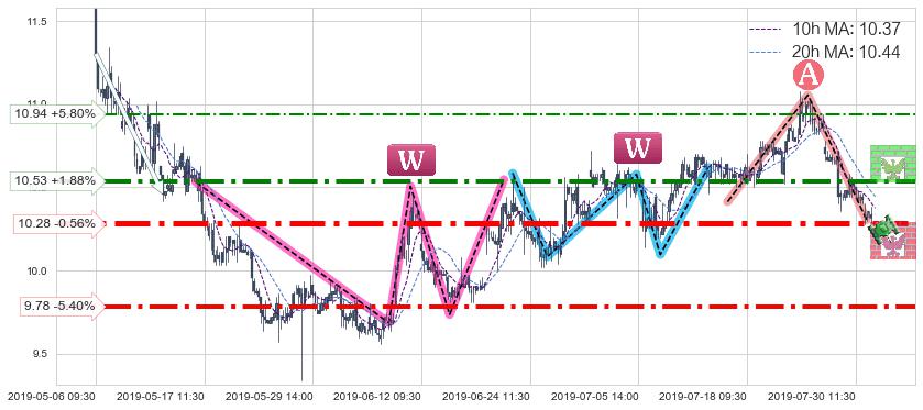 ♘ 支撑价格位10.28,可信任强度91.38%,距离最后交易2019-07-31 15:00形成的收盘价格10.34相差 -0.56%
