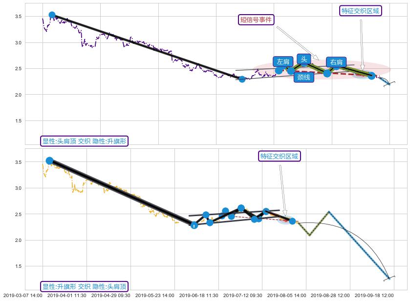 ➢ 头肩顶属【短级别信号事件】升旗形属【长级别信号事件】长短周期组合信号事件, 短长事件长度比33.02%