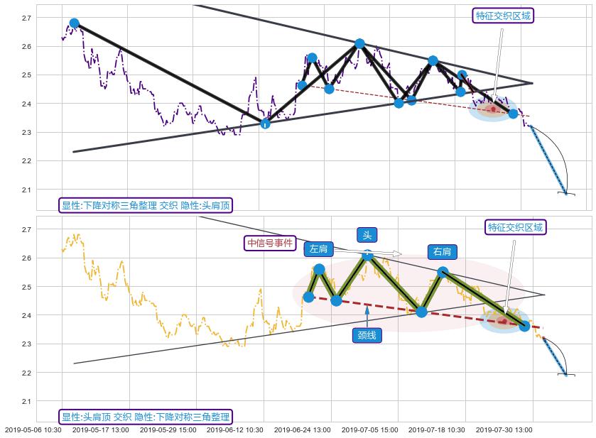 ➢ 头肩顶属【中级别信号事件】下降对称三角整理属【长级别信号事件】中长周期组合信号事件,中长事件长度比56.54%