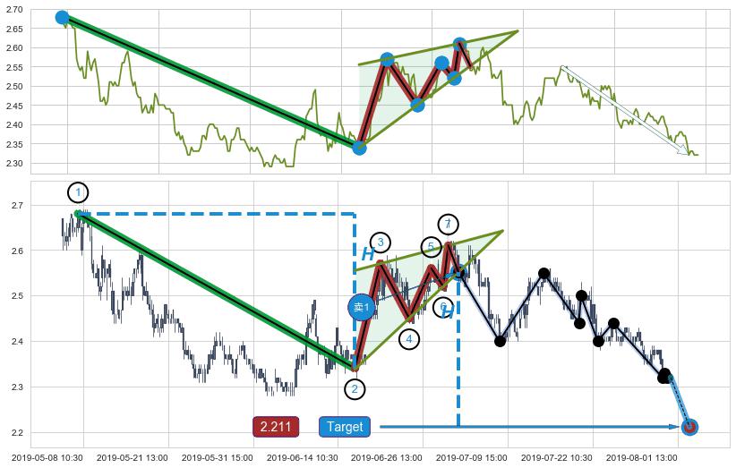 ♘ 阻力价格位2.308,可信任强度94.15%,距离最后交易2019-07-31 15:00形成的收盘价格2.320相差 -0.51%