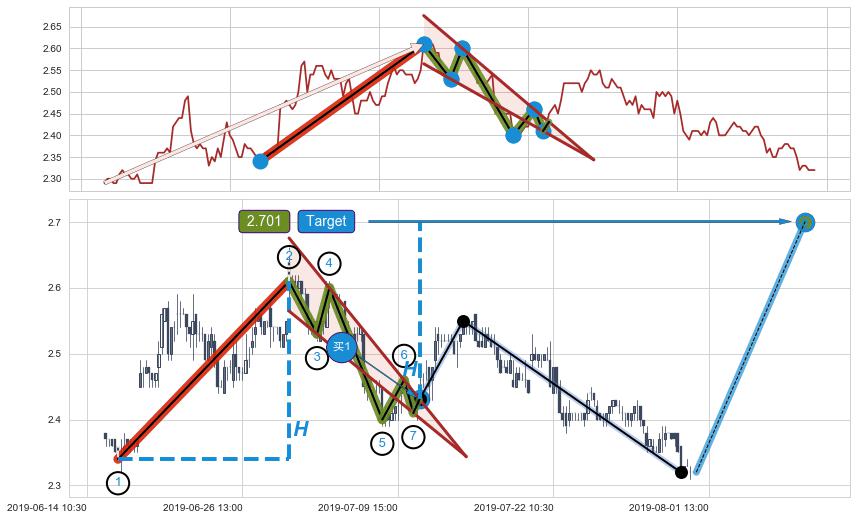 ➢ 最小中继整理涨幅→𝐇: 0.27000 (𝐇楔型旗杆的长度:楔型起点→顶点)