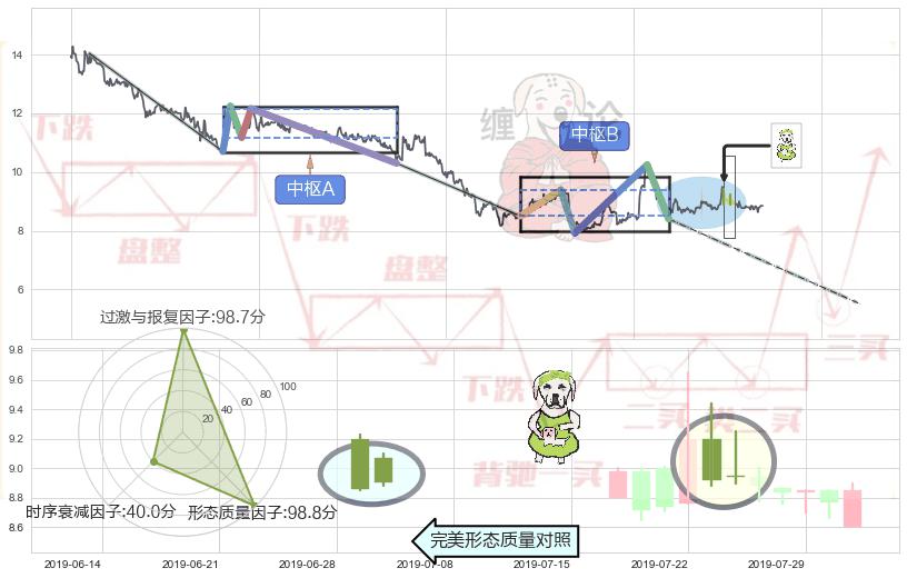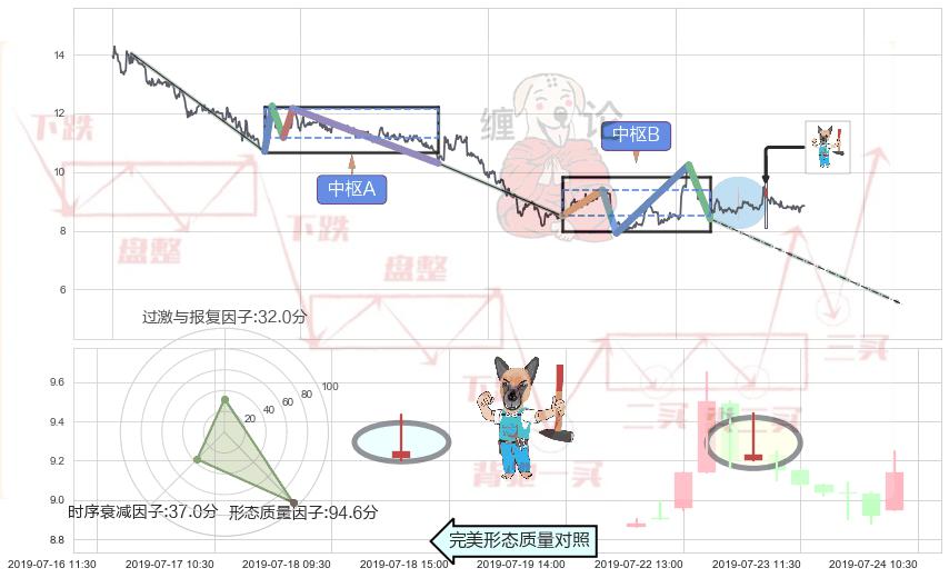 ➢ 下跌镊子线(n形磁铁) 🔜 缠论中枢点破位中枢B支撑下拉 综合量化分数:46.53 【中性】