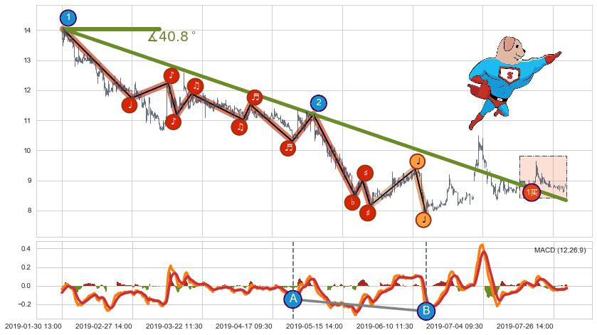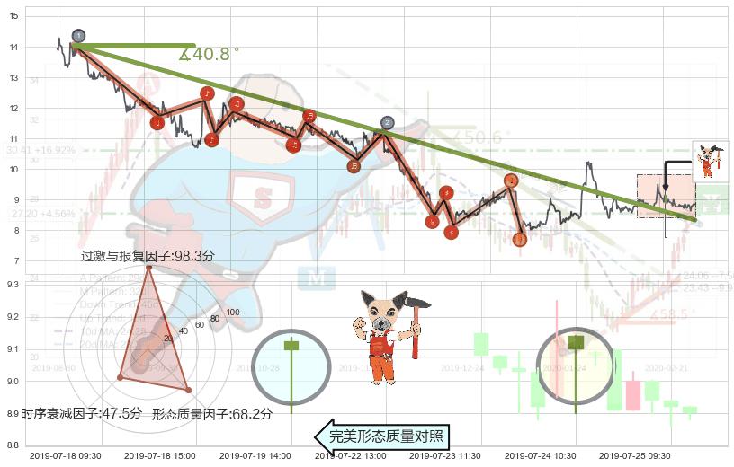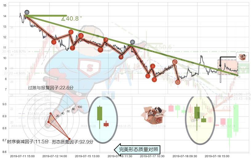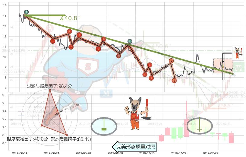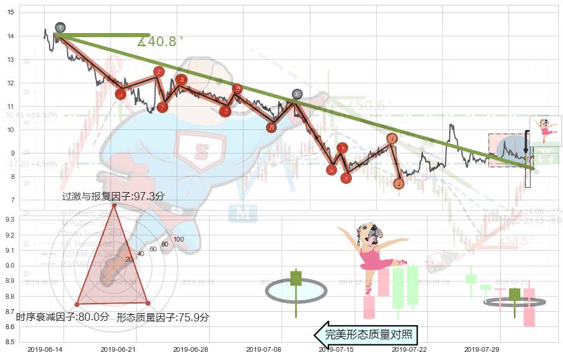 从2019-01-30 15:00至2019-06-17 10:30,共包含528个小时,阶段股价下跌-51.45%,阶段股价变动位移路程比: 1 : 8,下跌趋势角度: 40.8