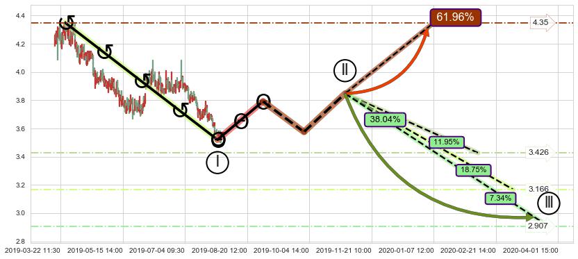 ➣ 大趋势循环浪继续向下概率38.04%