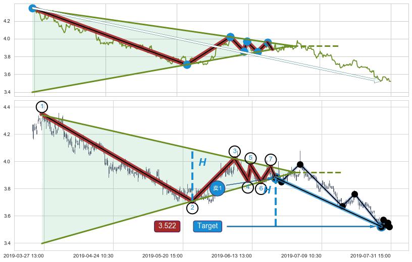 ➢ AI预测: 假定反转如期而至,第❶价格目标位置(08-14:10, 3.711)