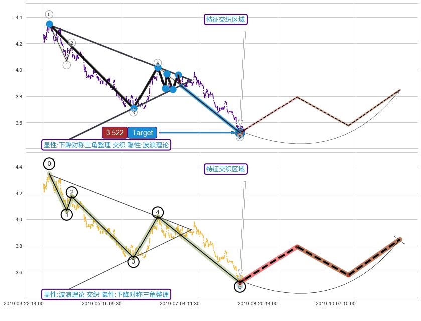➢ 下降对称三角整理与波浪理论信号事件周期长度级别相同,同周期信号事件