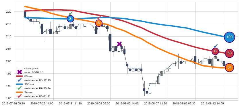➣ 34小时均线于(07-23 09:30: 2.220)形成【死叉】基于【死叉历史模型】预测死叉后最低波谷价格: 2.143, 死叉后最低价格1.8100,已经下跌超出预测最低波谷价格, 预期反弹