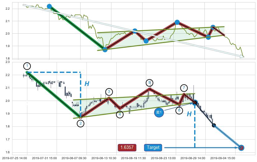 ➣ 最小中继整理跌幅→𝐇: 0.35000 (𝐇旗杆的长度:旗杆起点→顶点)