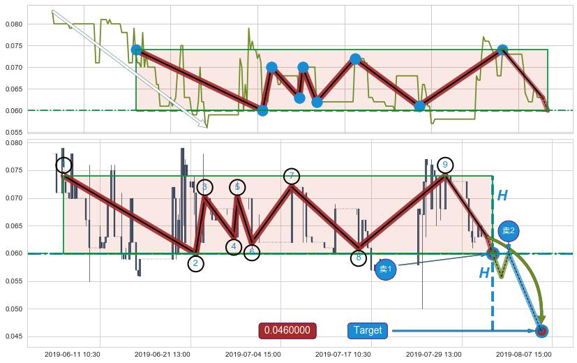 ➣ 最小中继整理跌幅→𝐇: 0.0140000 (上平行阻力线与下平行支撑线的垂直距离)
