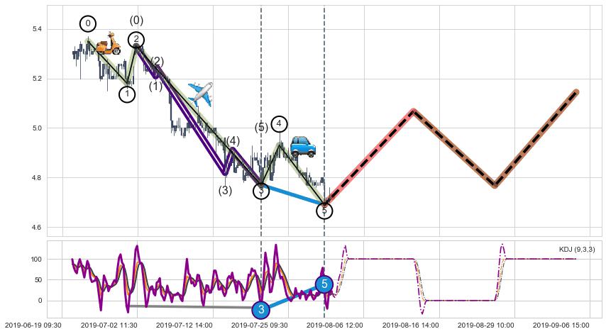 ➣ 波浪理论:猜想即将止跌 → 上涨 →【拐点】浪5临近 → 大趋势均值回复