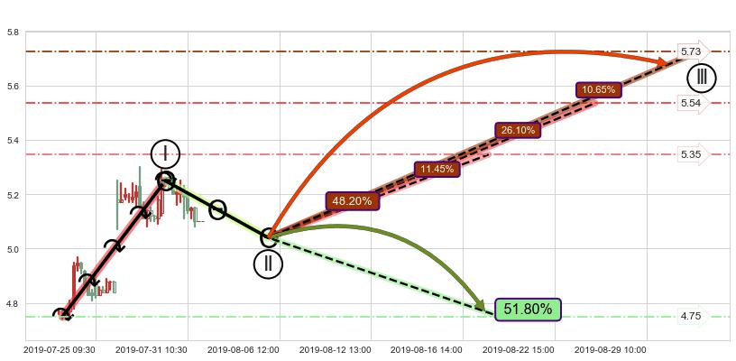 ♘ 支撑价格位4.72,可信任强度65.95%,距离最后交易2019-07-31 15:00形成的收盘价格5.10相差 -7.53%