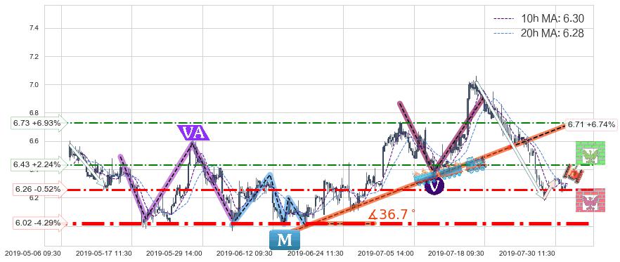 ♘ 阻力价格位6.43,可信任强度48.73%,距离最后交易2019-07-31 15:00形成的收盘价格6.29相差 +2.24%