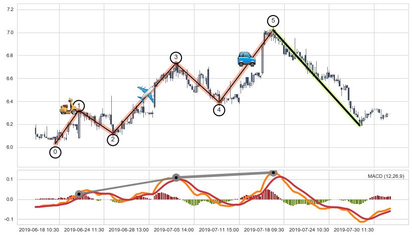 ➣ 波浪理论:猜想达到c点后小回调终止反转上涨 → 上涨 → 【拐点】临近 → 阶段均值回复结束后继续大周期趋势跟踪