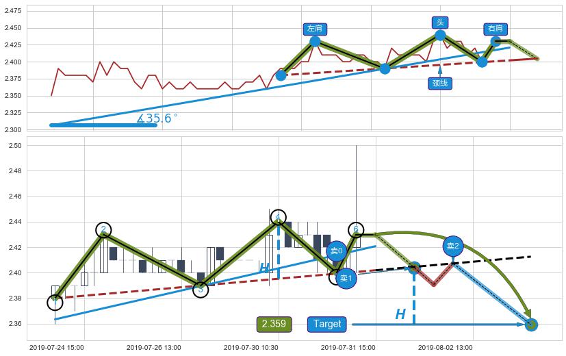➣ 最小反转跌幅→𝐇: 0.0446667 (头部与颈线垂直距离)