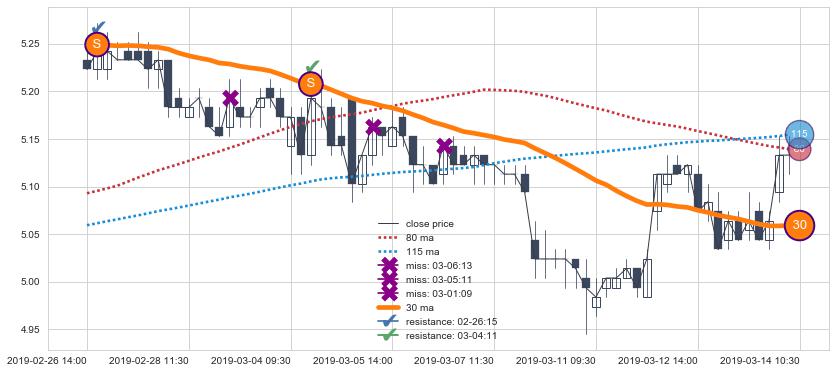 📝 多条均线形成死叉后走势最低价格达到: 4.14