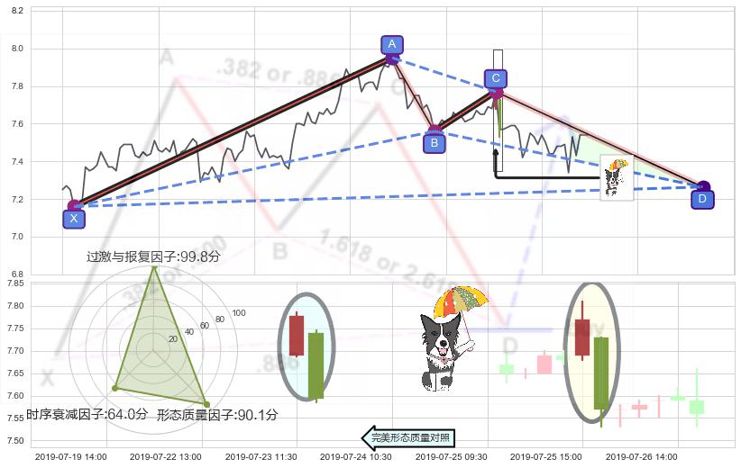 ➢ 🕰 价格走势在2019-07-19 14:00:00至2019-07-22 09:30:00期间形成空方炮,残存影响值:-0.33