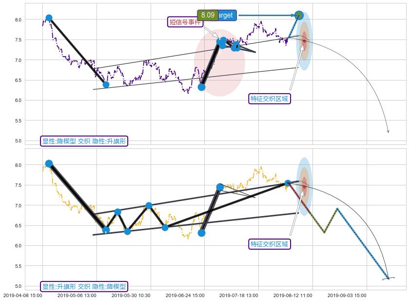 ➣ 2019-06-21 15:00-2019-07-23 09:30上升趋势存在反转[风险],其原上升趋势的支撑位(8.39)已破位[强阻力信号],原上升趋势角度: 46.8˚