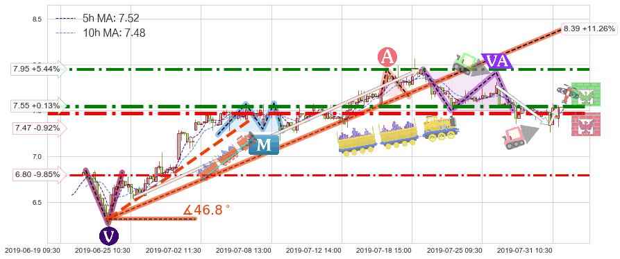 ♘ 阻力价格位7.55,可信任强度85.07%,距离最后交易2019-07-31 15:00形成的收盘价格7.54相差 +0.13%
