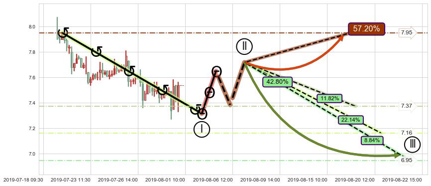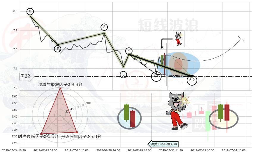 ➢ 5.1: 预测当前第5浪位置(07-31:09, 7.34),仍然有下跌空间