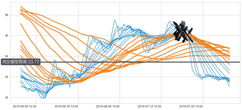 ➣ 70小时均线于(07-19 11:30: 35.01)形成【死叉】基于【死叉历史模型】预测死叉后最低波谷价格: 33.73, 死叉后最低价格32.50,已经下跌超出预测最低波谷价格, 预期反弹