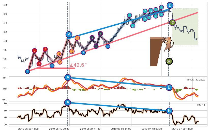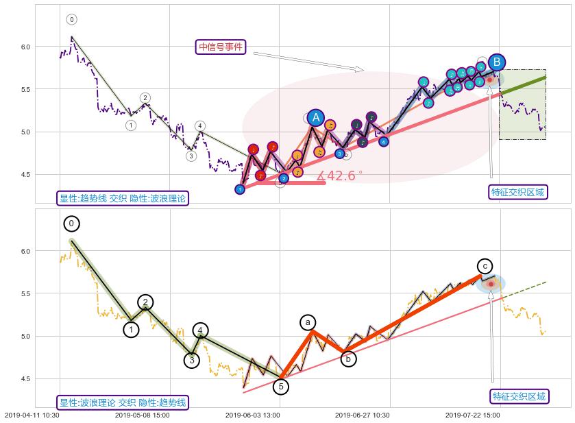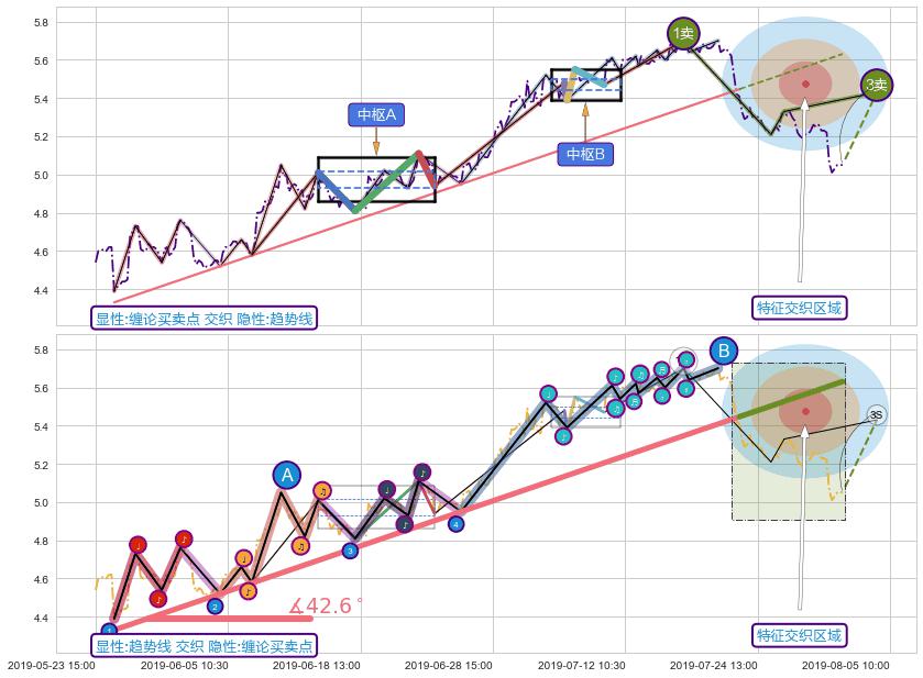 ➣ 2019-05-27 09:30-2019-07-23 11:30上升趋势存在反转[风险],其原上升趋势的支撑位(5.63)已破位[强阻力信号],原上升趋势角度: 42.6˚