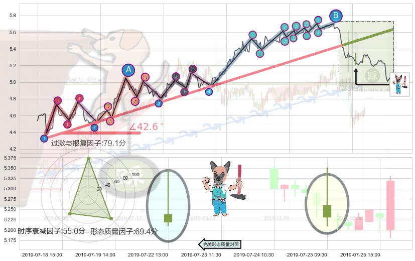 ➢ 2019-05-27 09:30-2019-07-23 11:30上升趋势存在反转[风险],其原上升趋势的支撑位(5.63)已破位[强阻力信号],原上升趋势角度: 42.6˚