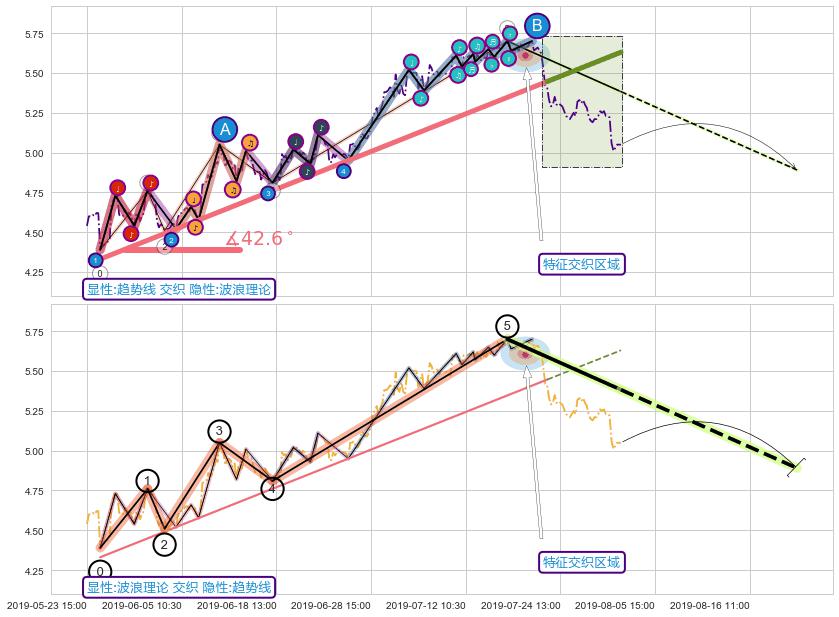 ➢ 最后的上涨趋势2019-05-27 09:30至2019-07-23 11:30:存在破位迹象,后续小调整或者反转下跌