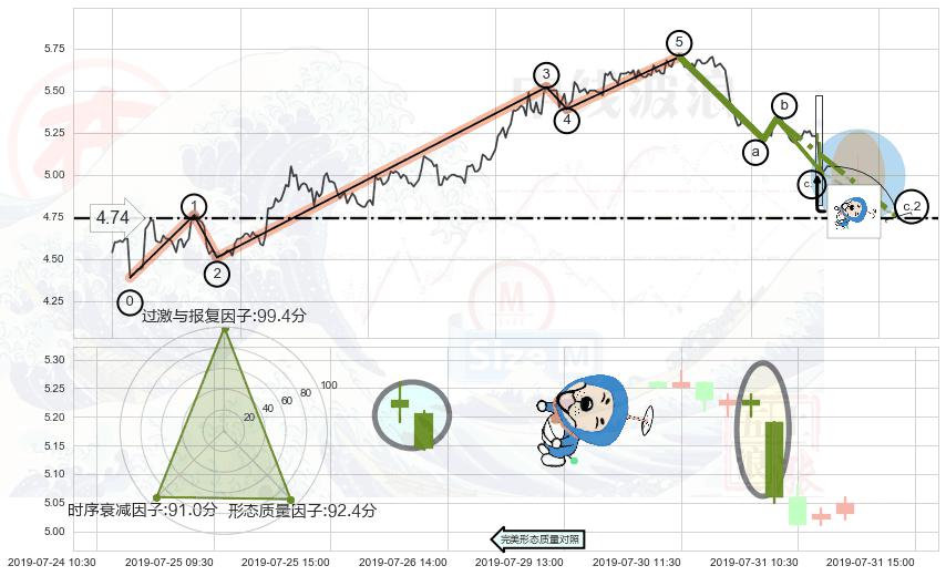 ♘ 支撑价格位4.74,可信任强度91.72%,距离最后交易2019-07-31 15:00形成的收盘价格5.05相差 -6.13%