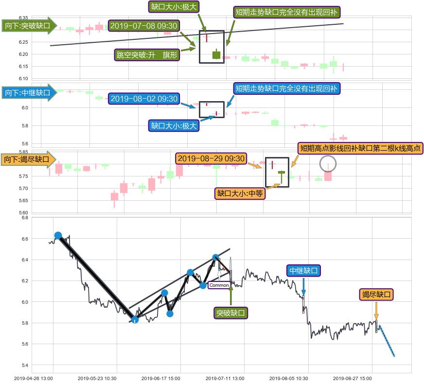 ➢ 2019-08-29 09:30形成:向下跳空【竭尽】缺口