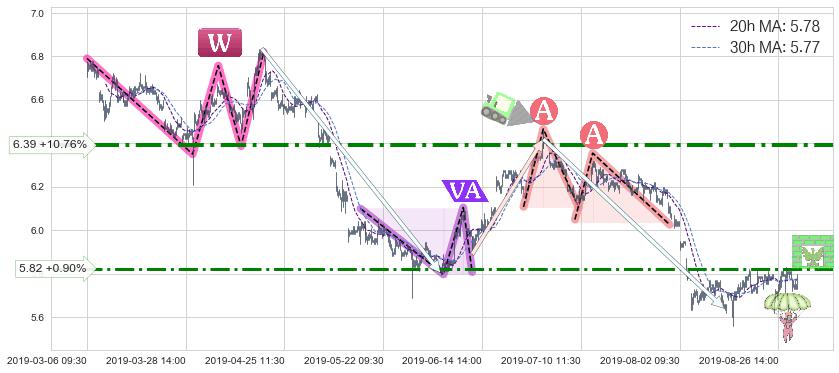 ♘ 阻力价格位6.39,可信任强度77.78%,距离最后交易2019-08-29 15:00形成的收盘价格5.77相差 +10.76%