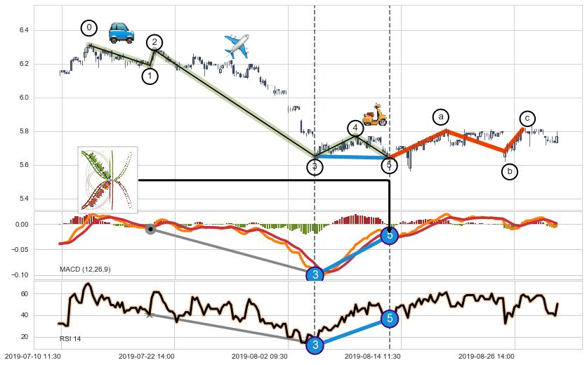 从2019-06-19 10:30至2019-07-09 11:30,共包含80个小时,阶段股价下跌-1.38%,阶段股价变动位移路程比: 1 : 14